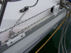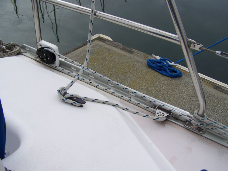 Safety Warning! Tripping Hazard! This raises the furling line and with the station gate open, it creates a tripping hazard. I tie small ropes to the toe rail to keep the rope low and out of the way.
