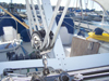 The Lewmar clutch next to the aluminum plate is for the main sheet. I replaced a clam cleat that came with the boat that got me into trouble more than once letting the main sheet go at a critical time. I did not like the fact that with the spinlocks, you have to take the load off with the winch before releasing them. I did not realize that and would release them without the winch. It's ether all or nothing with the spinlocks. With the Lewmar clutch you can release under a load with one finger pulling back and it also works as a clutch. You can bleed out a little line and stop it. I wanted something where my wife could dump the main in emergencies while I was at the wheel in the cold winds while she was warm under the dodger. There is one on each side. Most people tell me to rap the sheet around the winch but if you have to use the winch for one of the other Spinlocks. you're back to the same problem.
