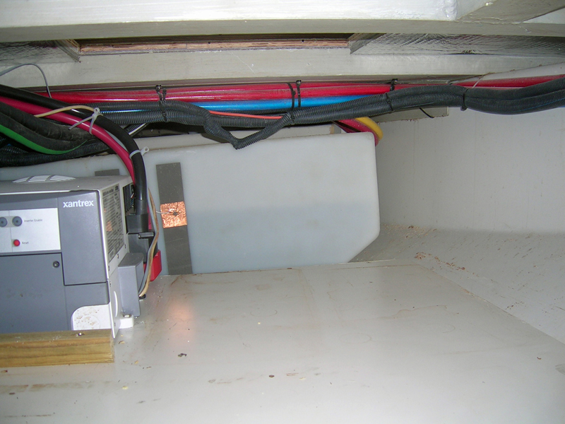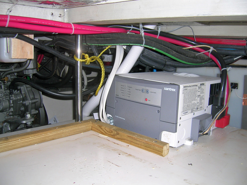 On my 30 day shake down cruise I found some things I would/will change. I would put a Xantrex MS3000 in instead. The charger output of the 2000 is 100 amps and the batteries can take more, so the 3000 has an 150 amp charger. I also plan to block the end towards the engine because I lost a few cans to the bilge.