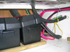 The first thing I did was to cut out the storage bin under the galley floor and the one under the galley sink. My friends on the dock thought I was crazy taking a saw to my boat one week after receiving it. I then installed 8 post buss bars in the battery area under the aft berth. (The way it was hooked up was a mess with adapters on adapters, some was from the primary electric winches I had installed by the factory.)